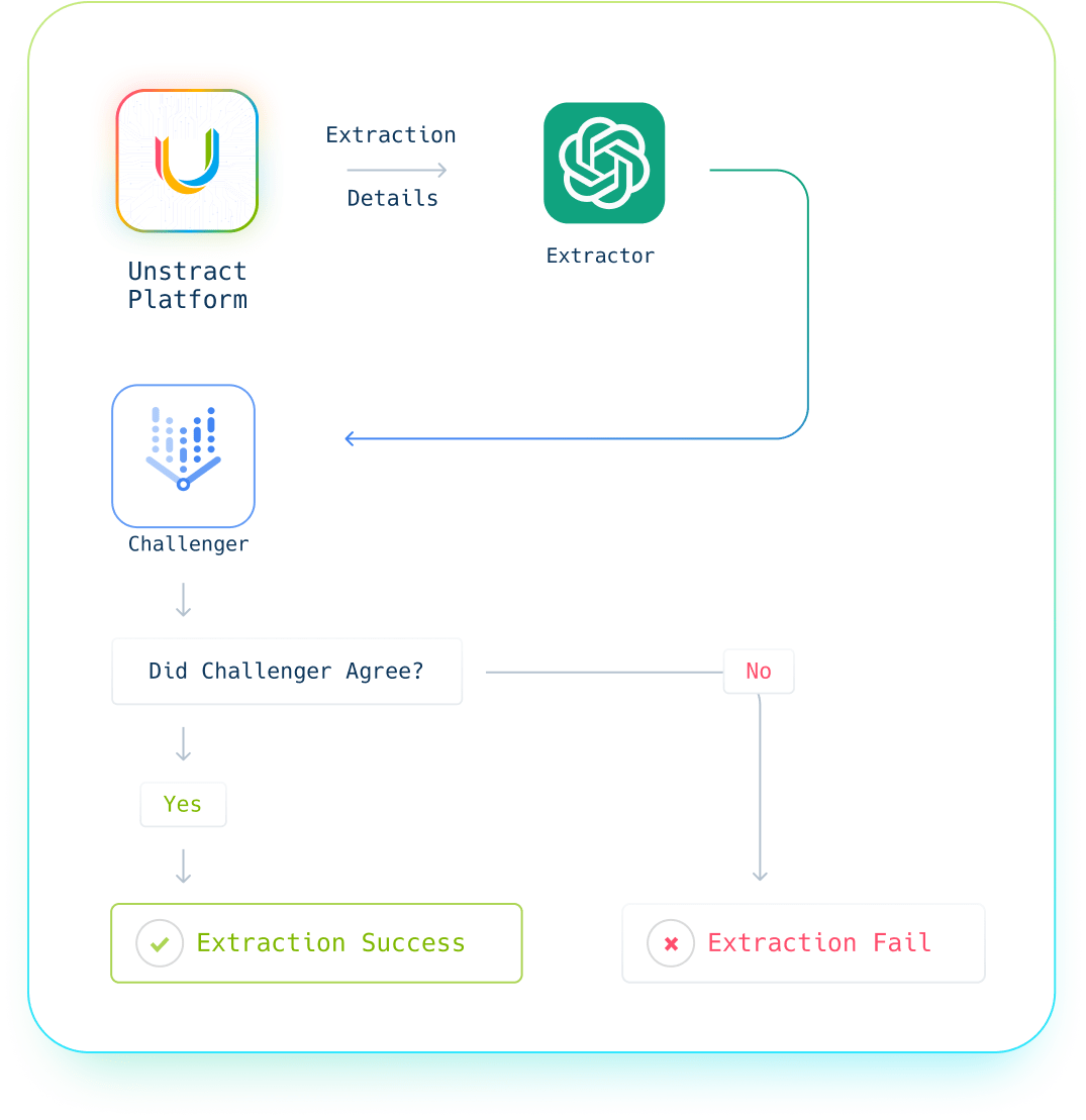 NULL is better than wrong: Unstract’s LLMChallenge uses two separate LLMs to extract and challenge, always giving you the right value or no value at all.