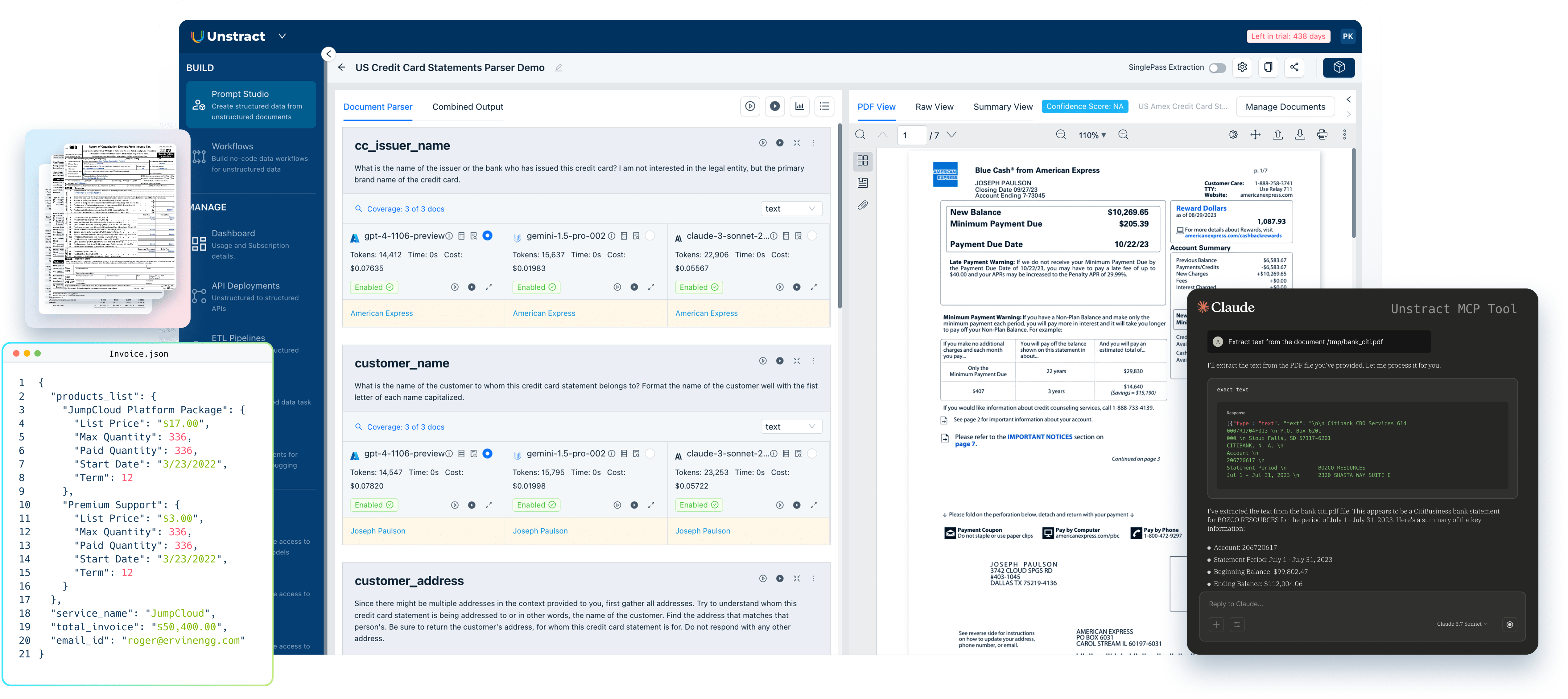 As you build. keep an eye on how much your extraction is costing you side-by-side comparison for your chosen LLMs.