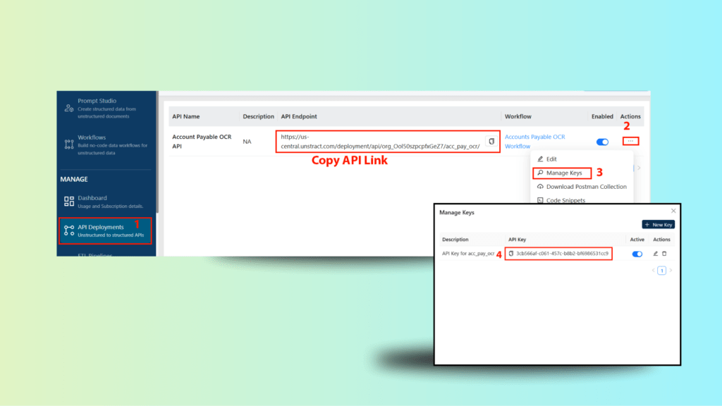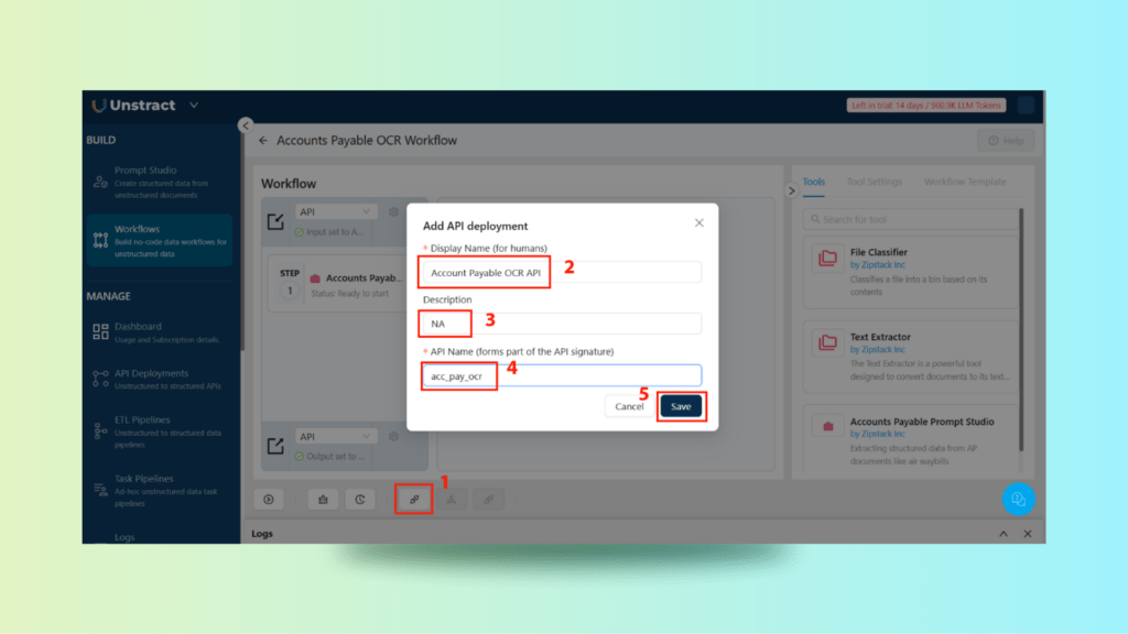 With your document extraction tool built in Prompt Studio, it’s time to integrate it into a fully working Accounts Payable OCR workflow, accessible via API.