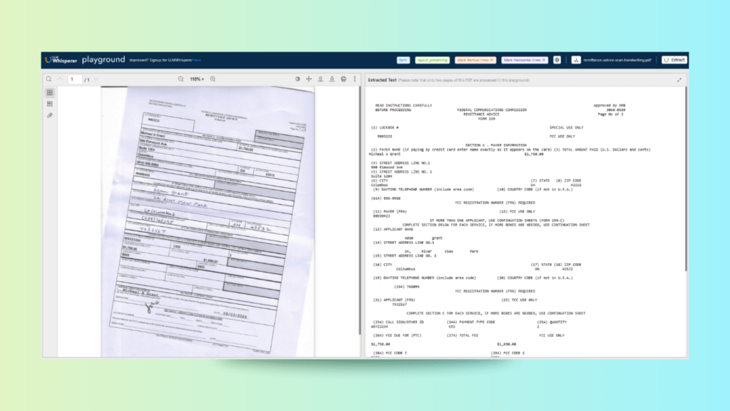 Whether you’re handling a poorly scanned remittance form, a vendor onboarding PDF with dozens of fields, or a multi-column air waybill, Unstract processes each with clarity and speed—no templates, no training data, no rework.