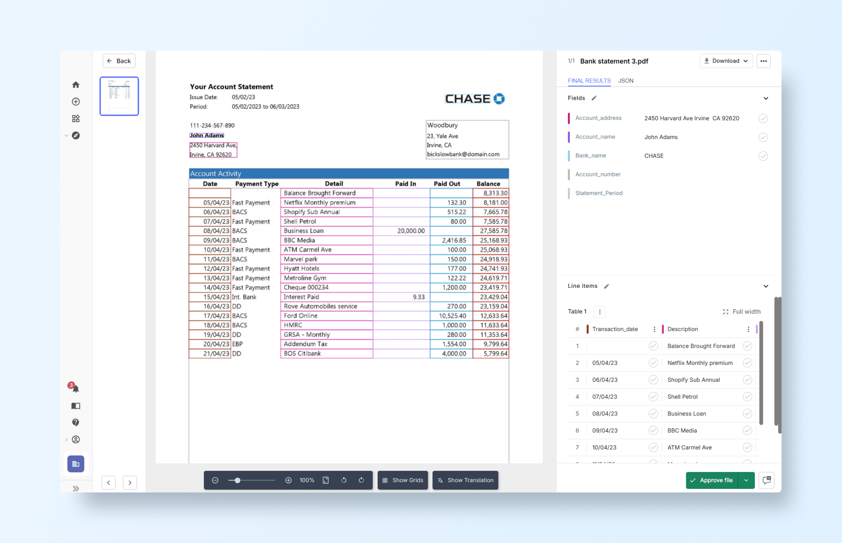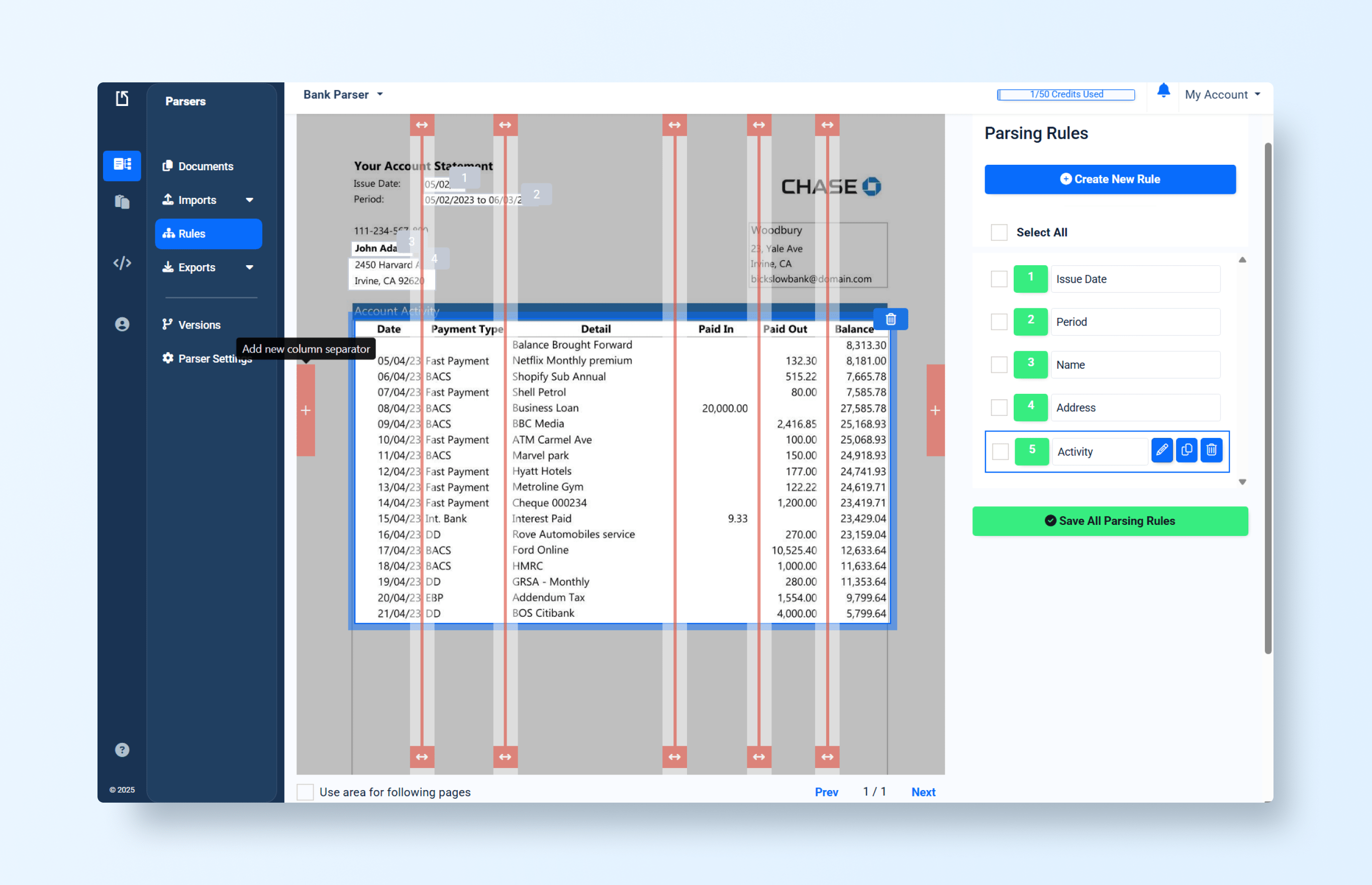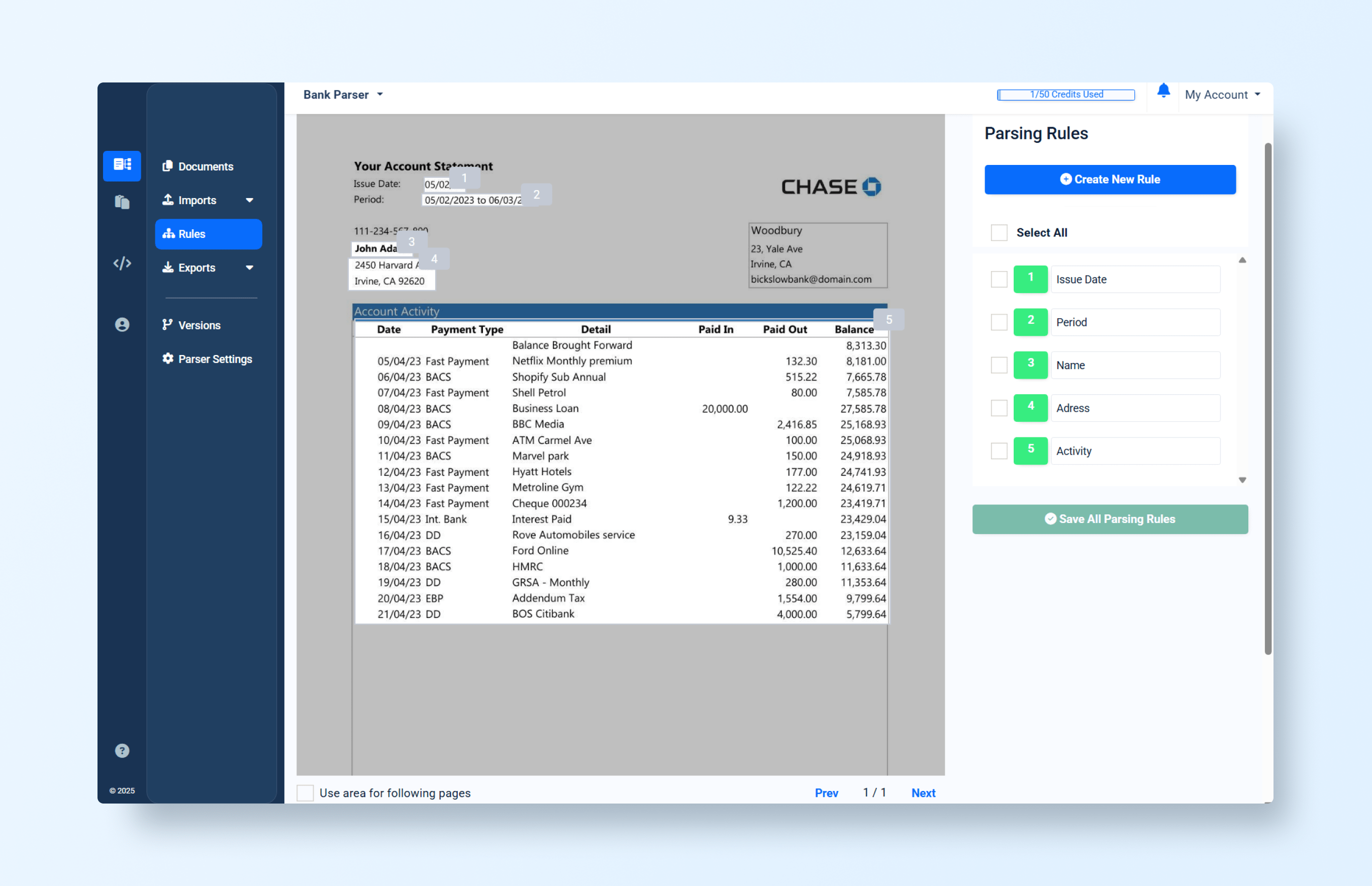 Imagine uploading a bank statement into what we’ll call Legacy System A. The interface prompts you to manually highlight fields like Account Number, Balance, or Transaction Date. Each highlight creates a bounding box, and behind the scenes, the system associates that box with an extraction rule.