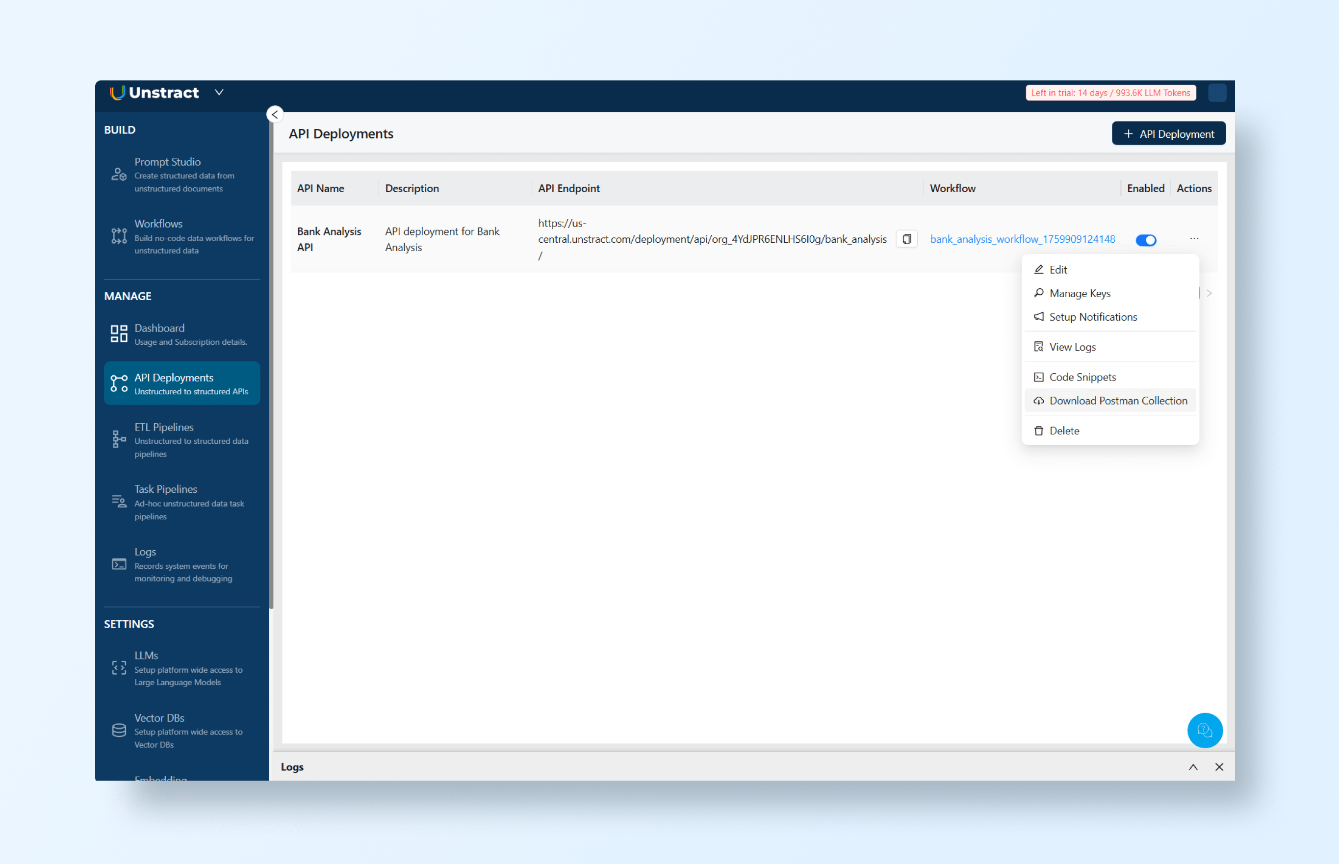 Unstract combines AI, structured schemas, and a flexible workflow to turn unstructured documents into validated, machine-readable data. Here’s a closer look at the components that make it possible.