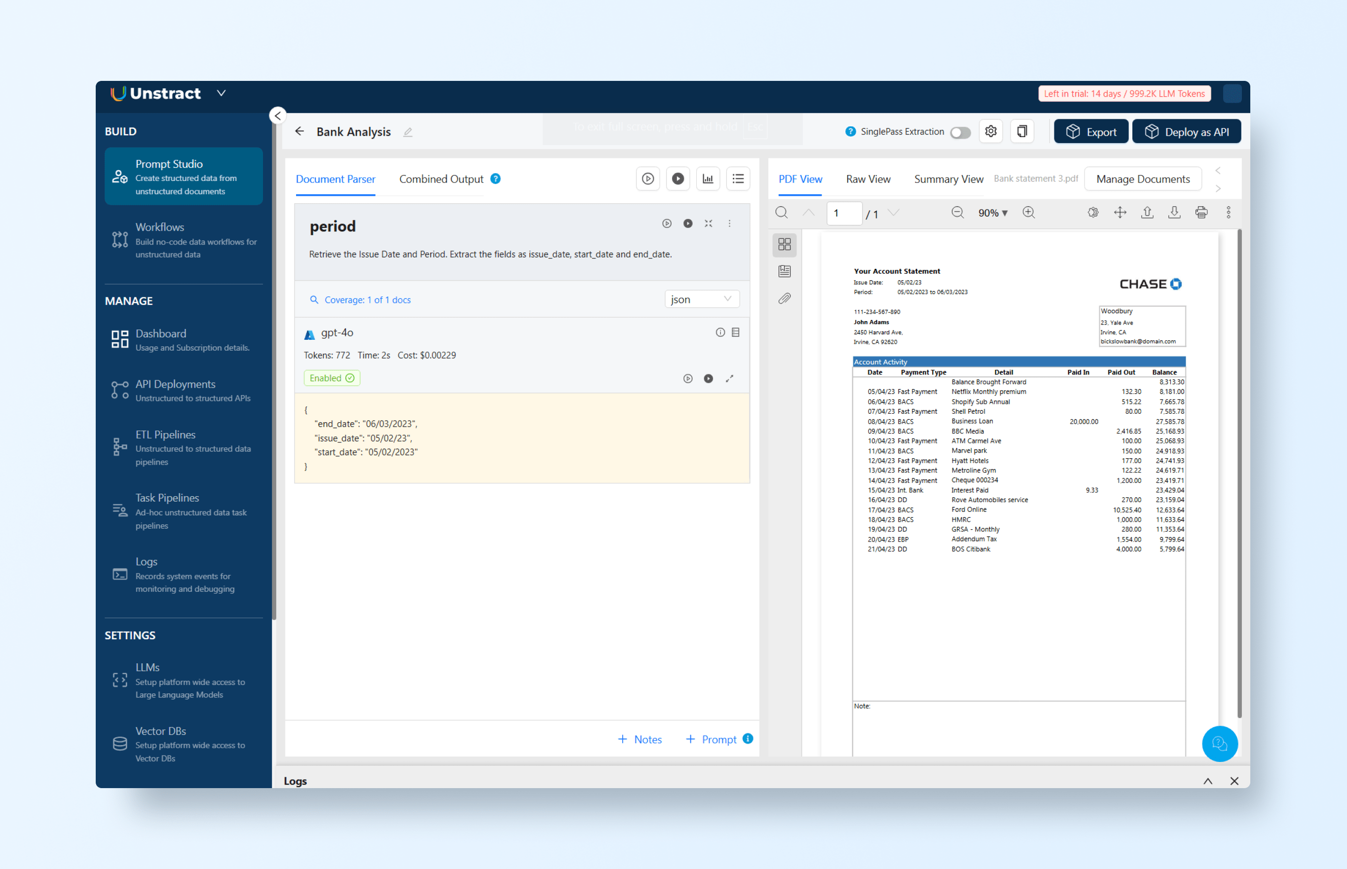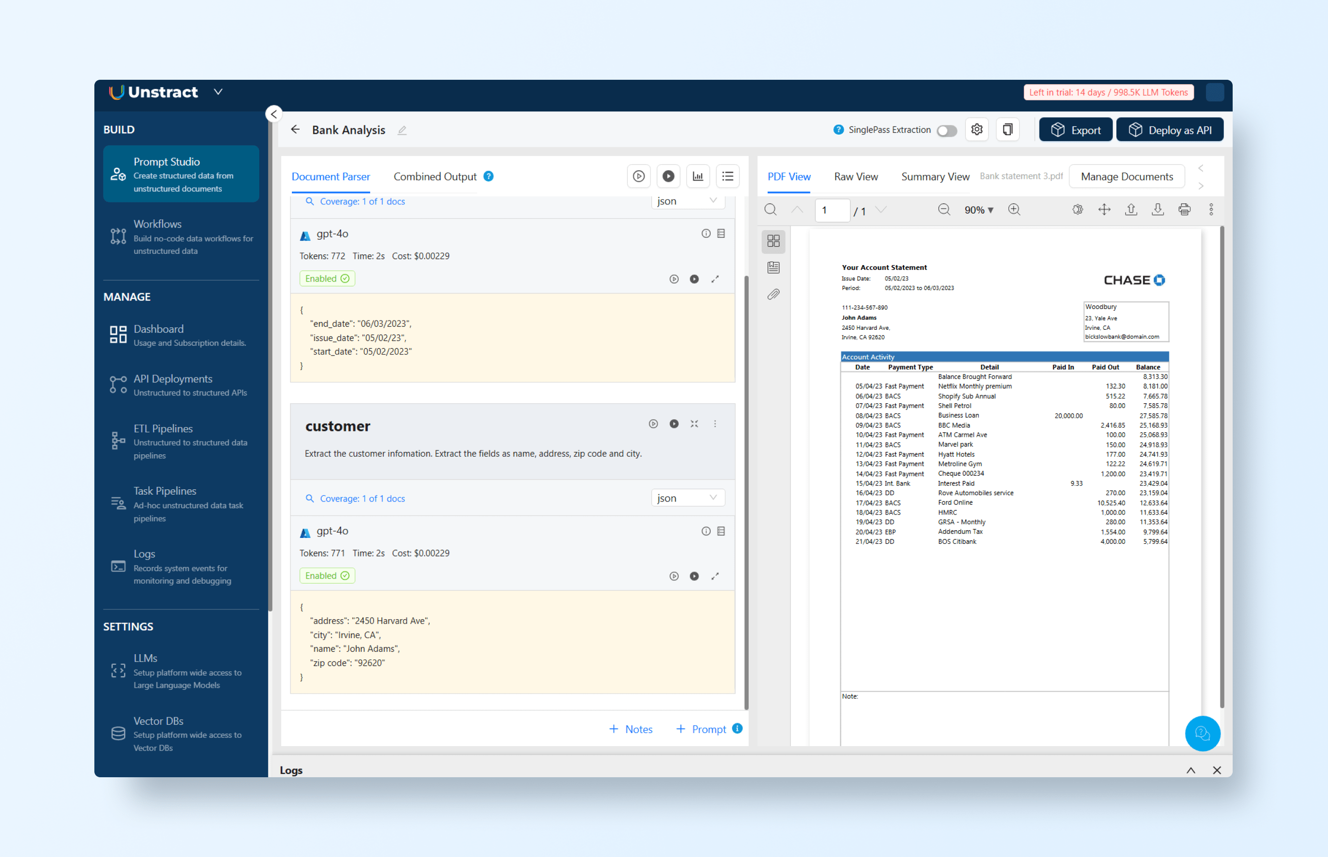 Where older systems require bounding boxes and pre-built extractors, Unstract relies entirely on AI-driven schema definitions. Instead of telling the system where to look, you simply tell it what to extract. Unstract interprets the document’s layout, context, and semantics, adapting automatically to variations in design or structure.