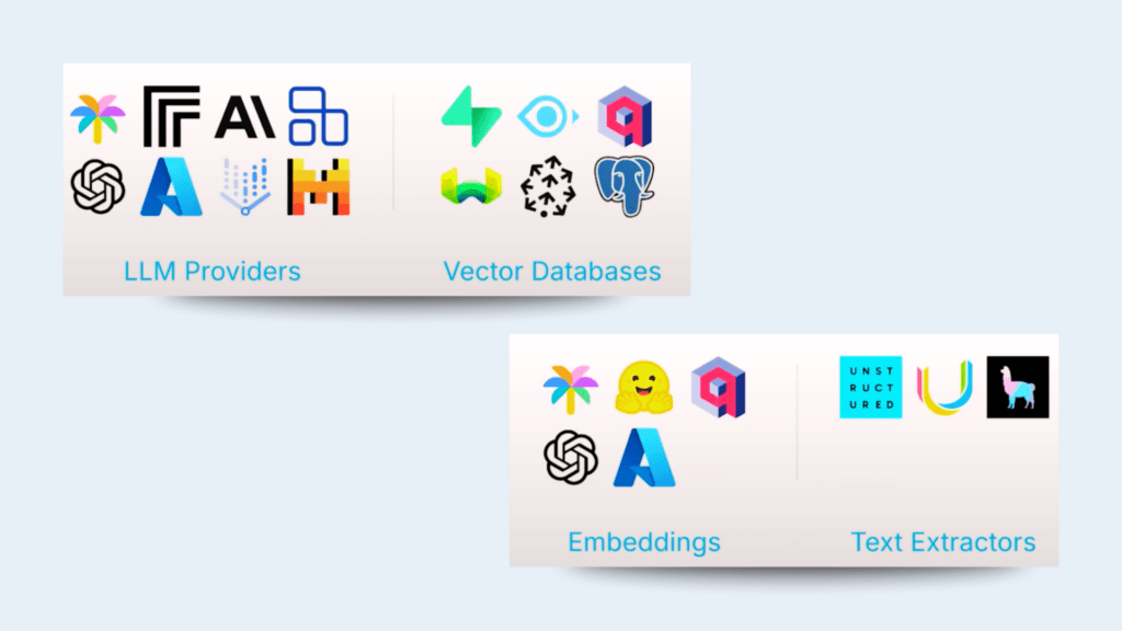 Vector Database: To store the information embedding and retrieve it to be used from the selected LLM by navigating to Settings → Vector DBs (Postgres Free Trial VectorDB preconfigured)