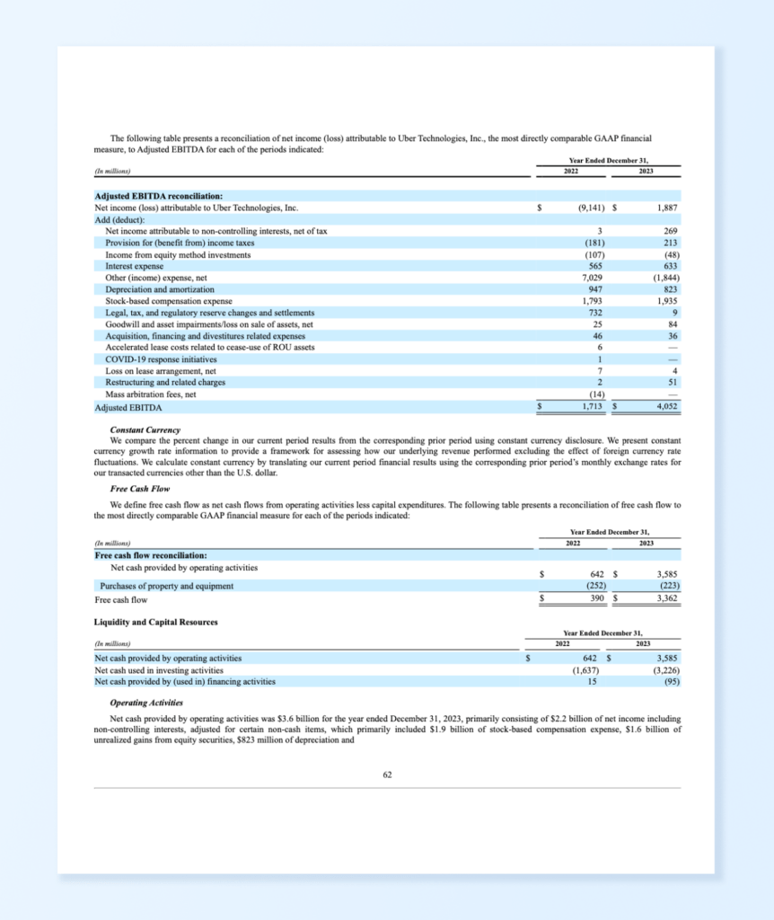 Financial reports like the Uber 10-K represent some of the most challenging documents for text extraction. This document combines sophisticated layouts with precise numerical data that must be extracted accurately.
