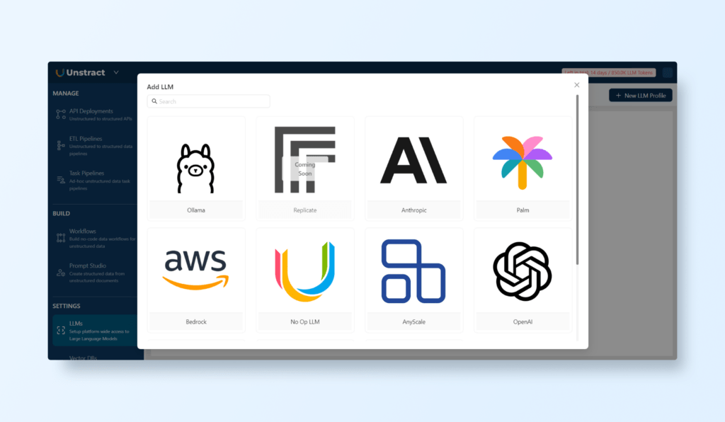 Unstract employs LLMs to analyze the text and data extracted by LLMWhisperer. These models can understand the context and structure of the document, enabling accurate data extraction.