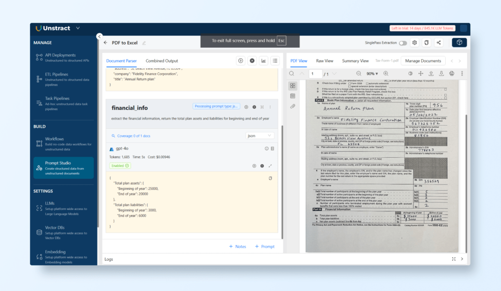 Extract and Convert PDF Data to Excel Spreadsheet with Unstract