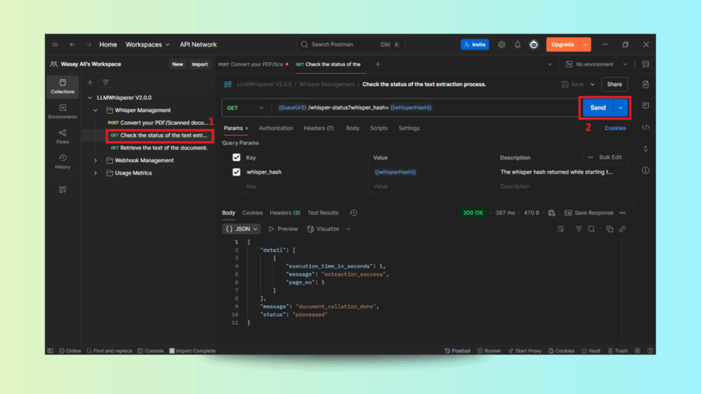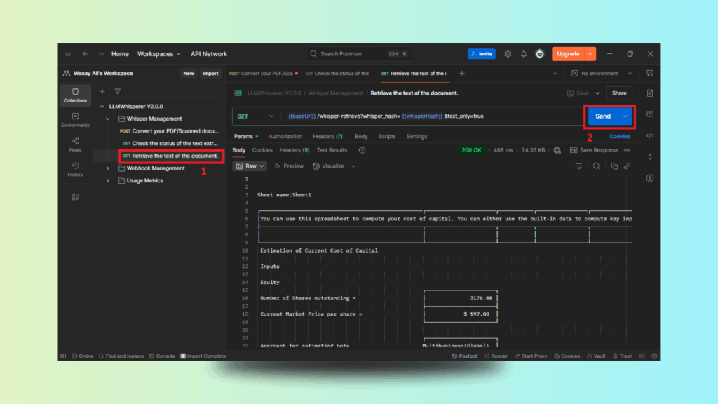 The following steps show how to process Excel files using LLMWhisperer’s API through Postman.