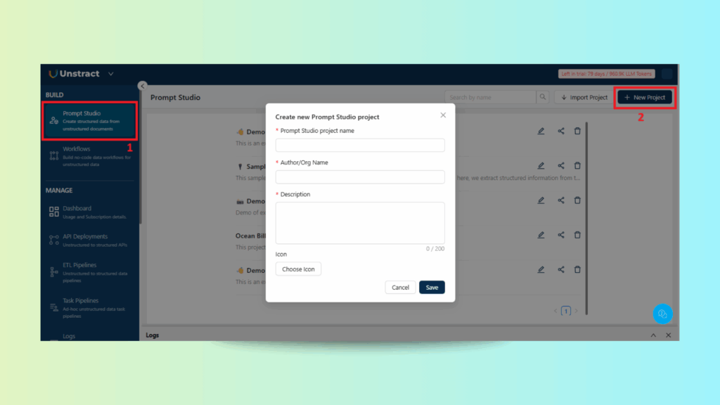 Step 1: Creating a New Prompt Studio Project