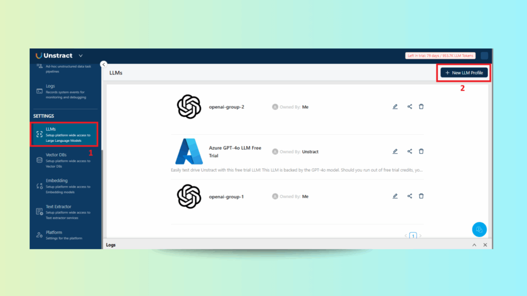 Unstract Excel Data Extraction: Selecting the LLM Model Under Project Settings