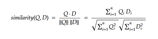 Cosine similarity measures how closely two vectors align in embedding space, and it is computed as: