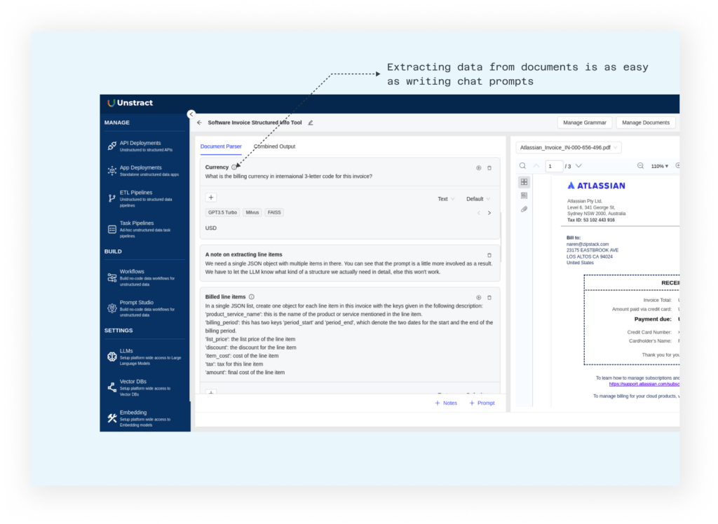 This is precisely why Unstract has Prompt Studio.  Prompt Studio is a no-code tool that enables you to extract data from any complex document — all by leveraging AI. Extract data once and automate the rest by deploying it as an: