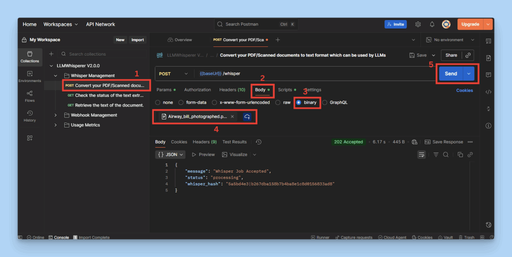 Uploading the Photographed Airway Bill in Postman and sending the POST request
