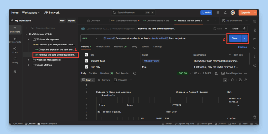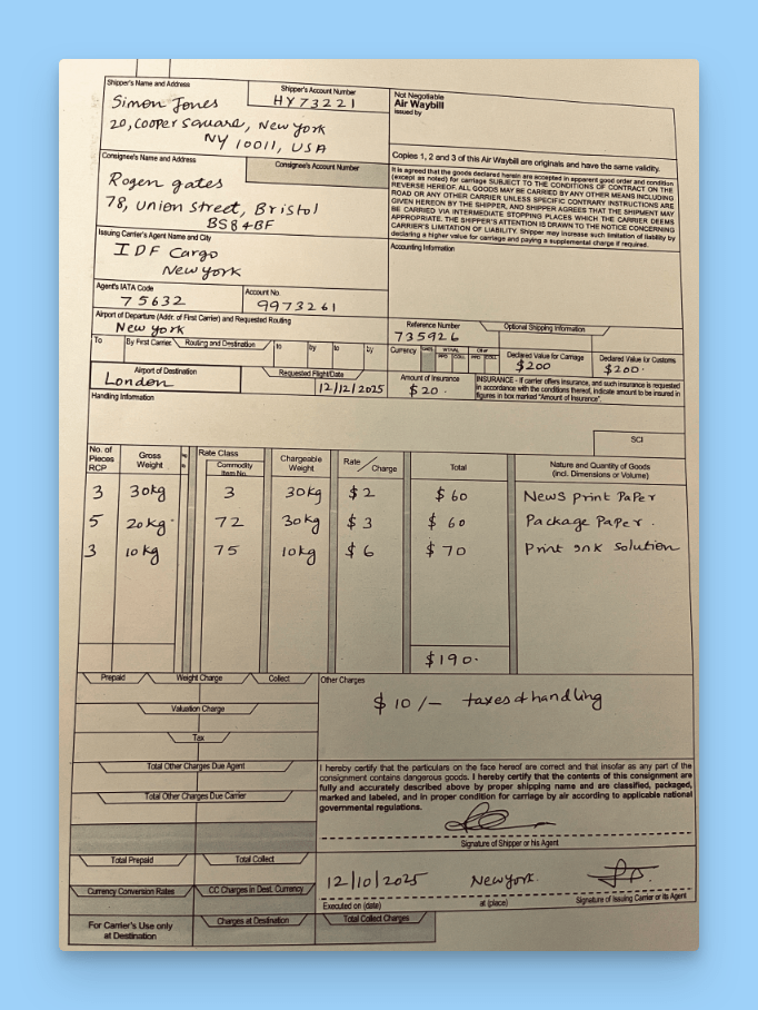 For this walkthrough, we’ll use the LLMWhisperer API to extract data from a photographed Airway Bill (PNG).