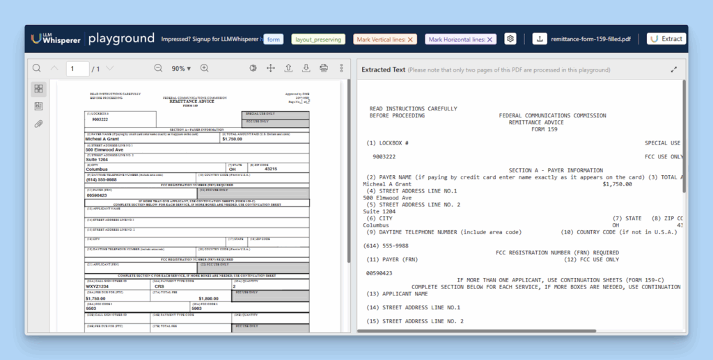 This is where LLMWhisperer comes in. It is an LLM-optimized OCR pipeline, audit-ready, and built to handle complex documents.