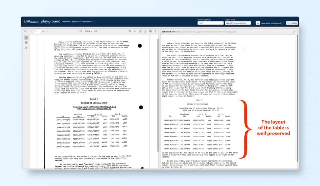Let’s take the example of processing a scanned document, such as a page from the Apollo Space Mission Manual. Using LLMWhisperer, this process becomes seamless and efficient: