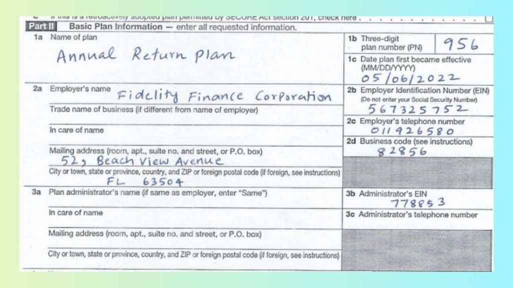 plan_and_employer_info: Extract all plan, employer, and administrator details from the Form.