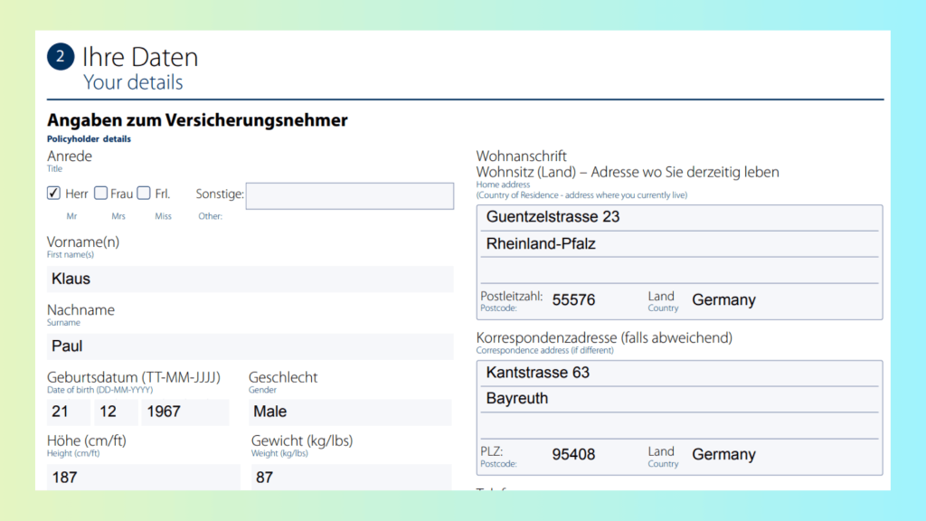 Soll der Versicherungsnehmer im Rahmen [X] Ja [ ] Nein
