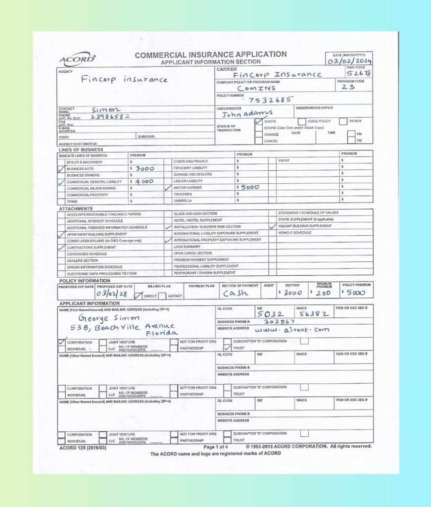 A policy number appears on a different line
