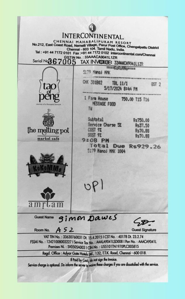 Photographed receipts