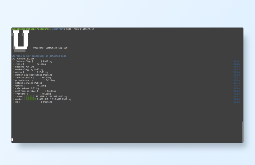 Start Docker if it isn’t already running. Run the setup script to launch Unstract: