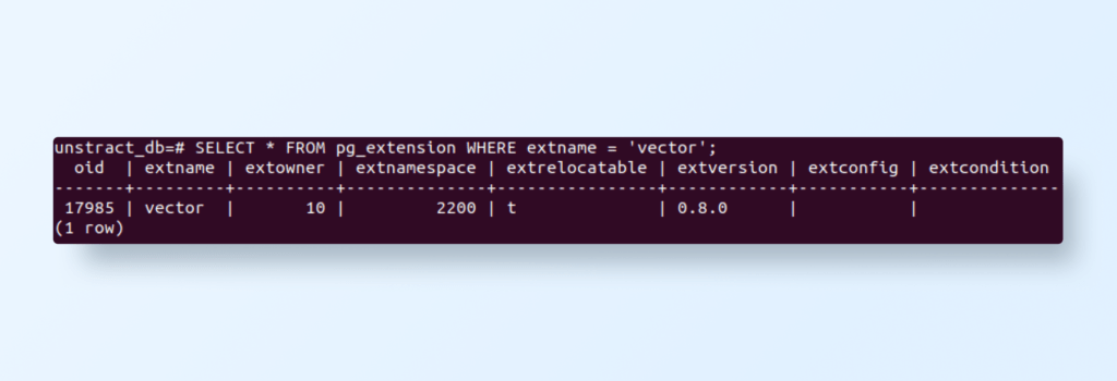 Since Unstract is already running a Postgres database, we can use that database to set up PGVector.