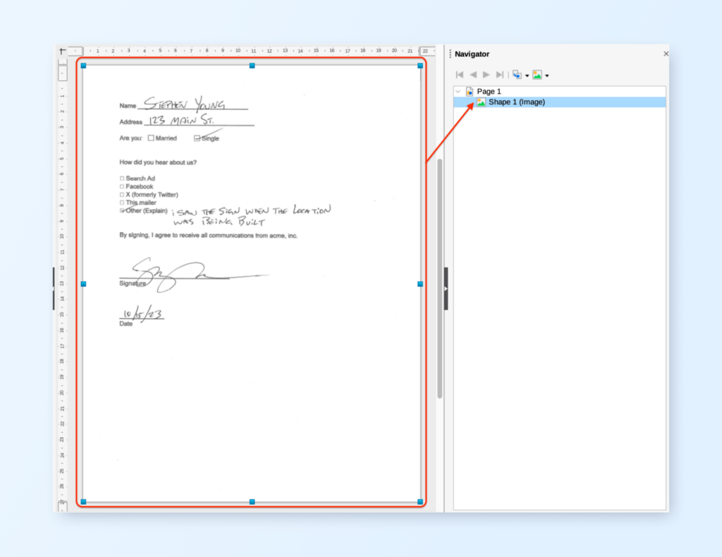 Many PDF libraries are not capable of extracting form elements from the PDF. Even less can extract the form elements’ contents which the user has filled in. Even if we decide to convert the form into an image for OCR use, there are a couple of issues: