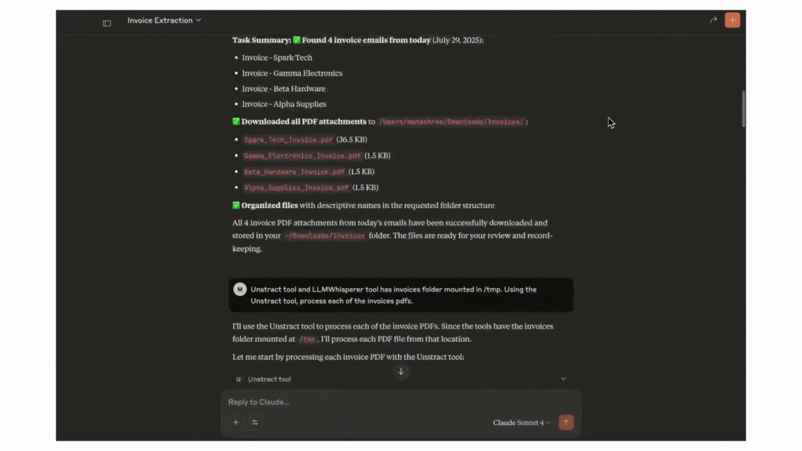 No more juggling multiple apps, writing glue code, or managing extra integrations. Simply connect Unstract or LLMWhisperer alongside your other tools, enter prompts in plain language, and let MCP handle the heavy lifting.