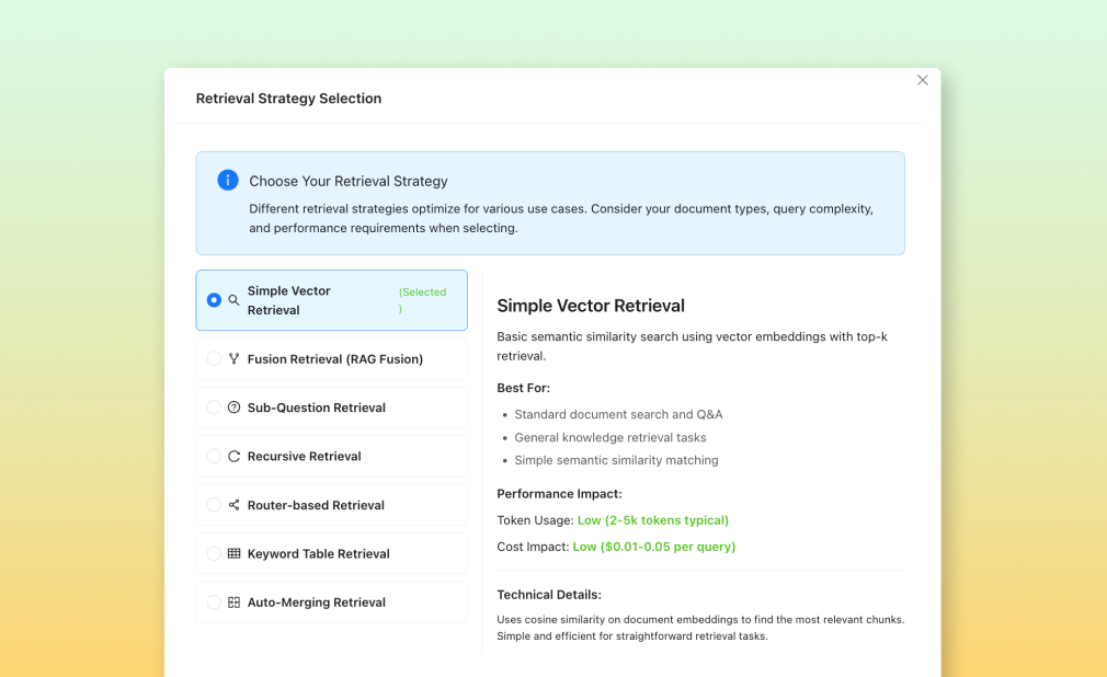 Unstract now supports multiple advanced retrieval strategies, each with its own trade-offs in speed, cost, and accuracy. In Prompt Studio, you can easily switch between strategies and experiment to see which one delivers the best results for your project.