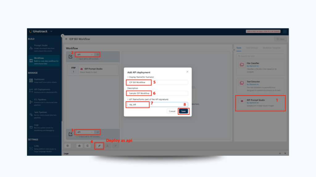 In Unstract’s Workflow editor: