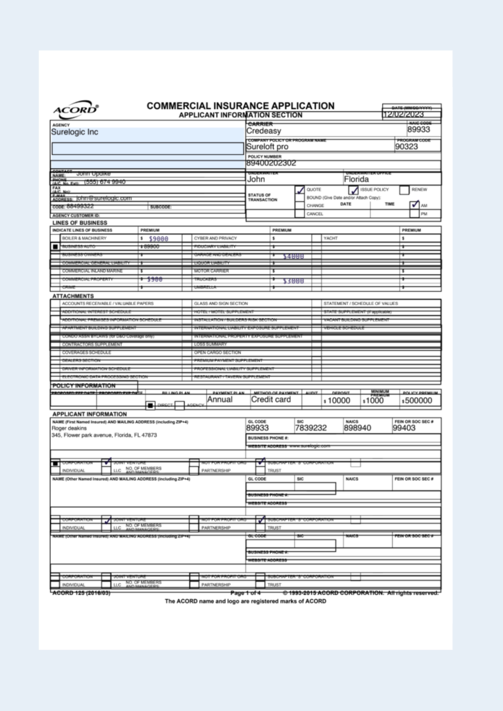Agent: The structured data extracted from the file at `/tmp/ACORD-Insurance-form.pdf` is as follows: