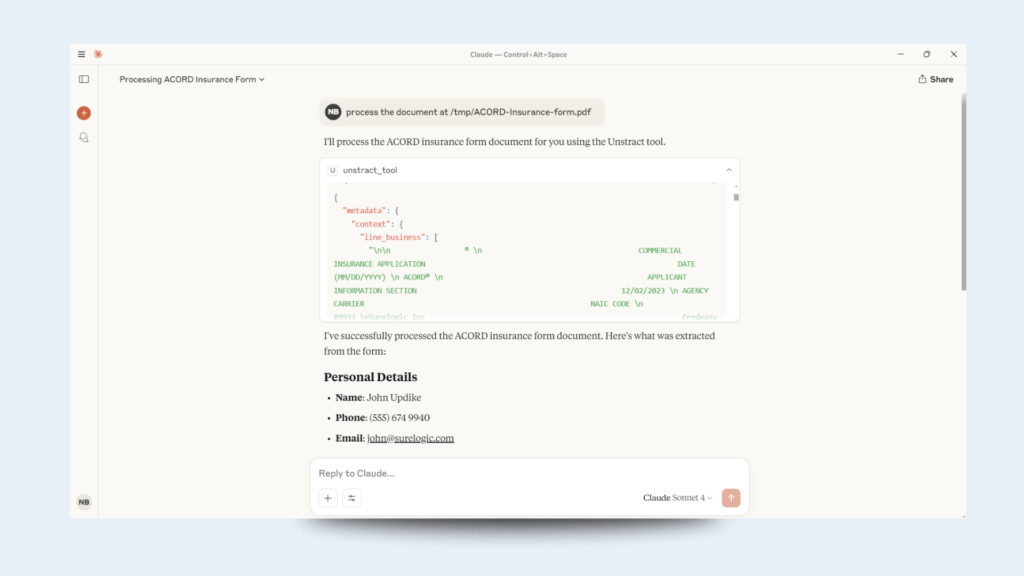 By leveraging Unstract’s MCP Server, organizations unlock a new level of productivity: data engineers can query PDFs and contracts directly from IDEs, analysts can run natural-language extractions in chat interfaces, and prompt engineers can iterate on workflows without touching code.