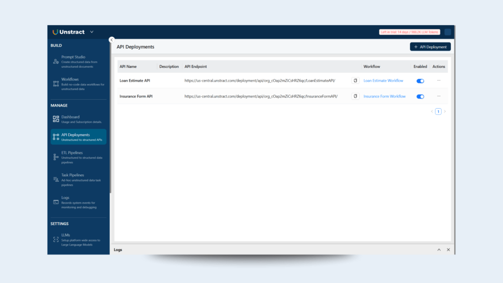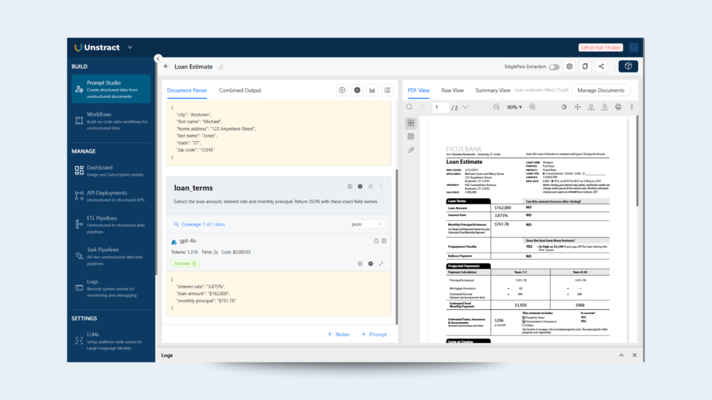 Partner with Unstract today to modernize your mortgage processing workflows. Access our demo, API documentation, to experience the power of AI-driven mortgage document processing.