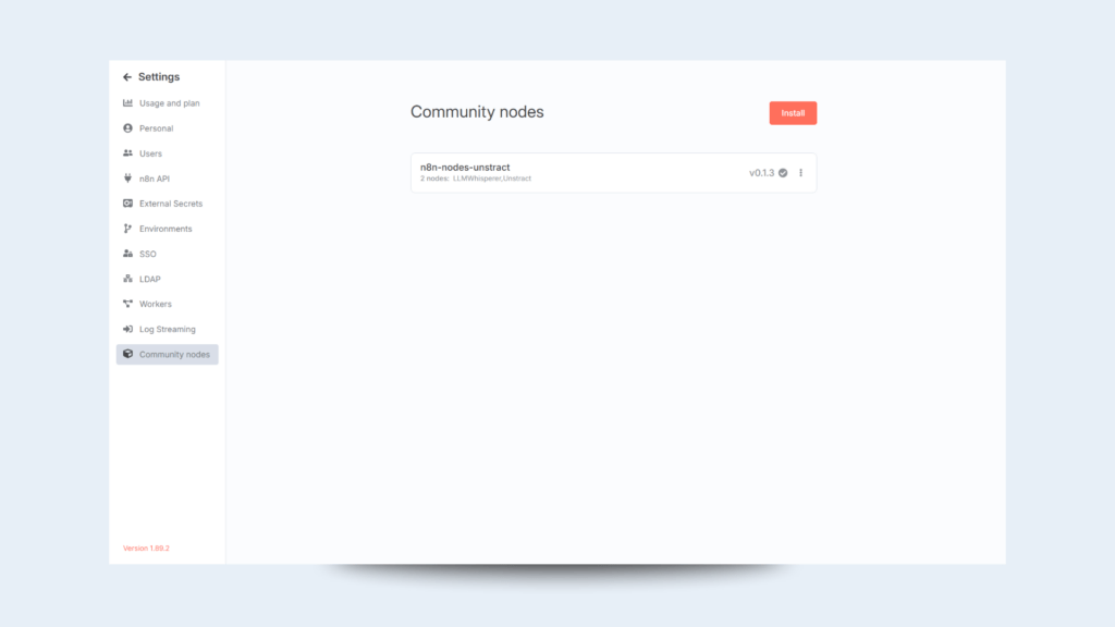 After a couple of seconds, the community node for Unstract should be installed: