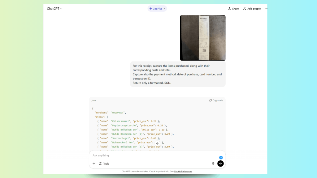 First, let’s demonstrate its OCR capabilities using a skewed photo of a receipt: