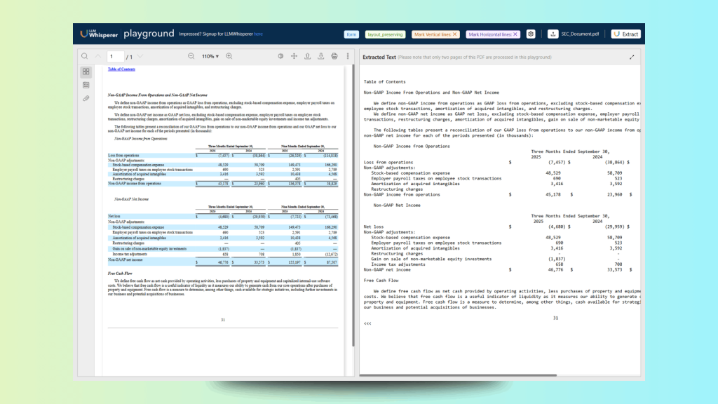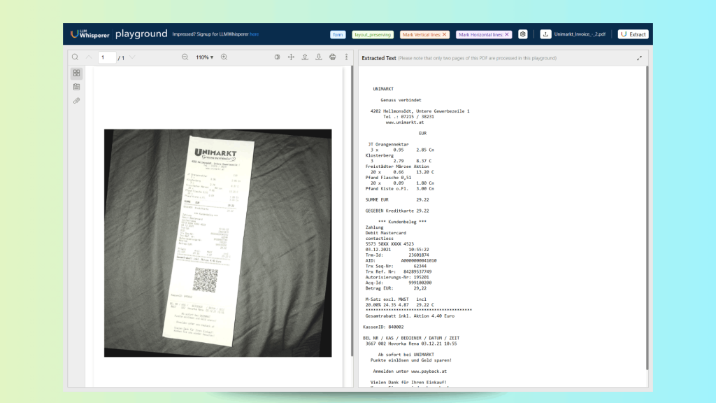 Let’s see LLMWhisperer in action. You can try it yourself in the LLMWhisperer playground.