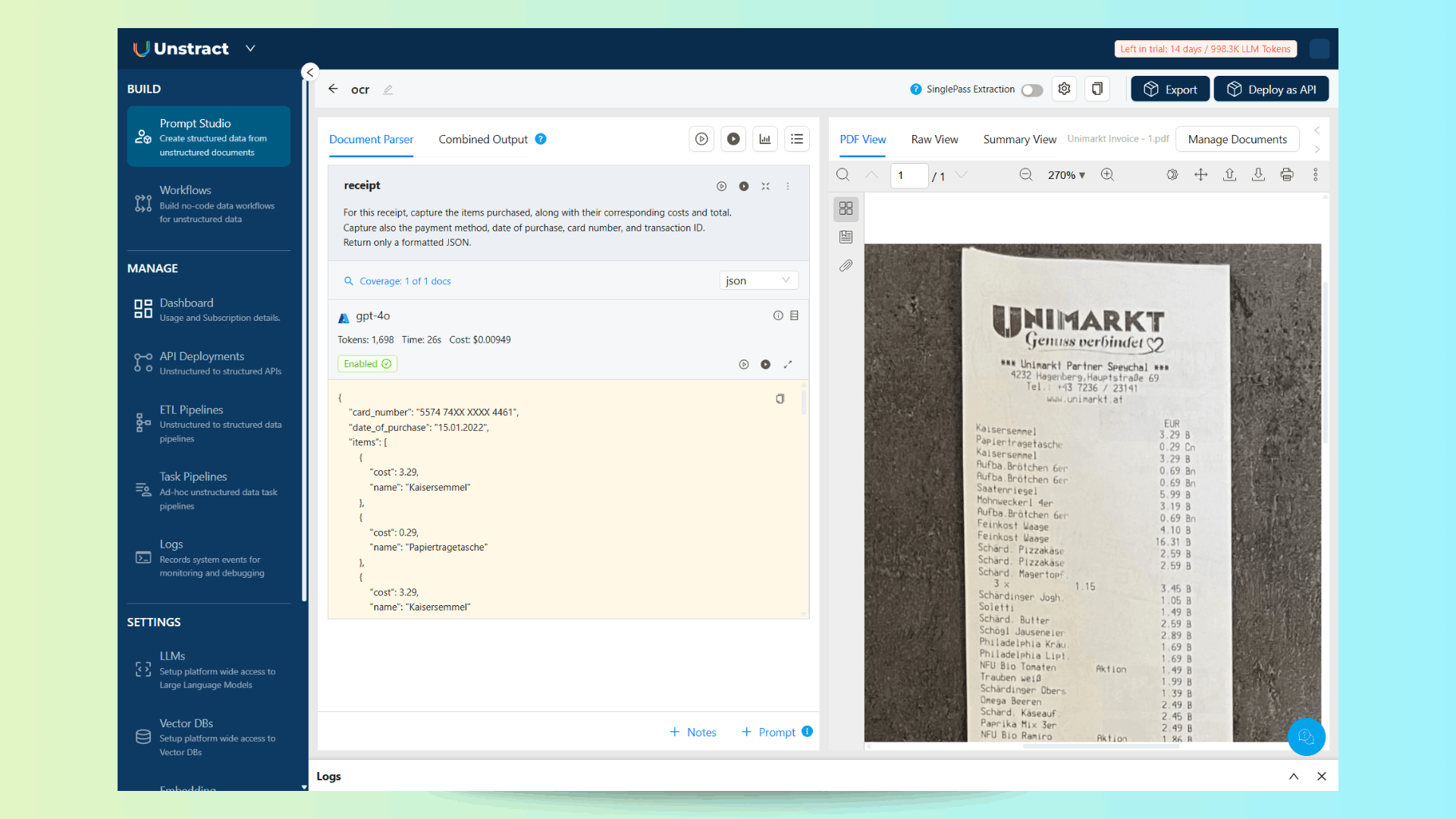 - Cost efficiency: OCR handles visual processing cheaply, while LLMs process only smaller, structured outputs, reducing token usage and API costs