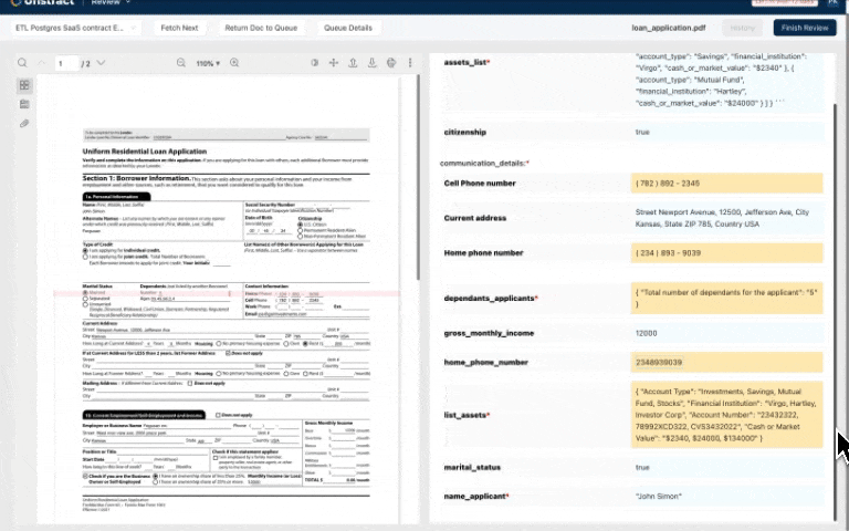 Human-in-the-loop(HITL): Source Document Highlighting shows where extracted data came from in the original document.