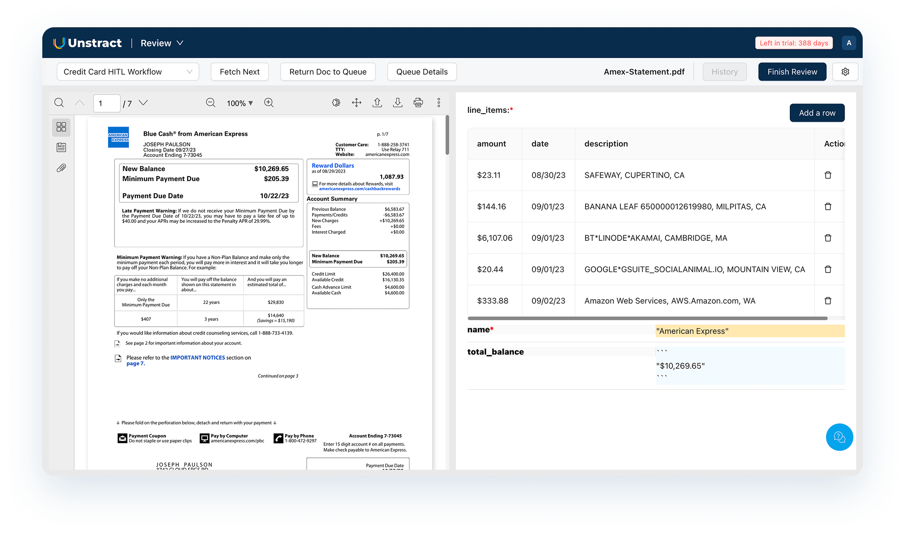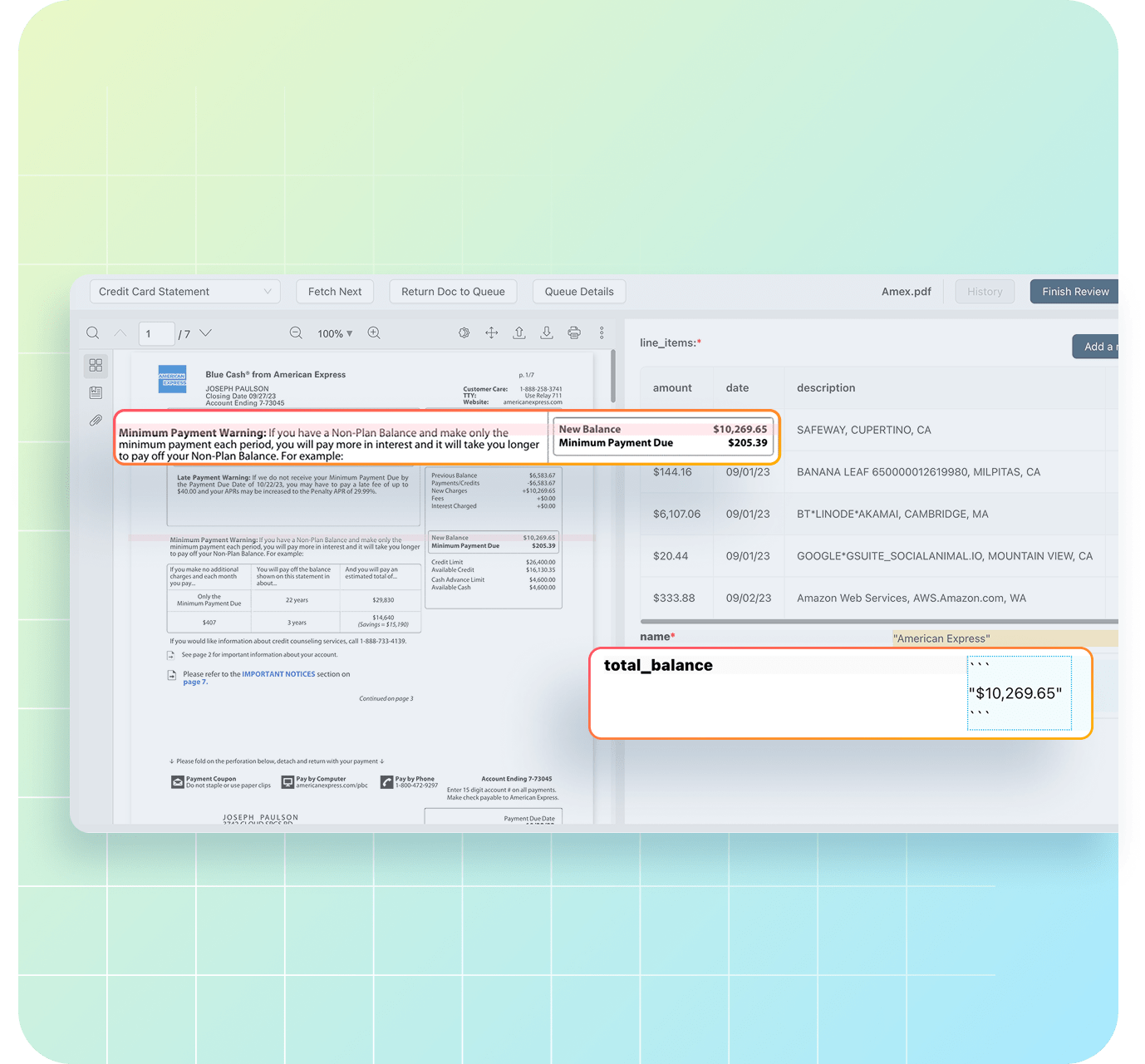 See extracted data side-by-side with source documents. Click to highlight, edit mistakes, and approve with confidence. What used to take hours of context-switching now happens in seconds.
